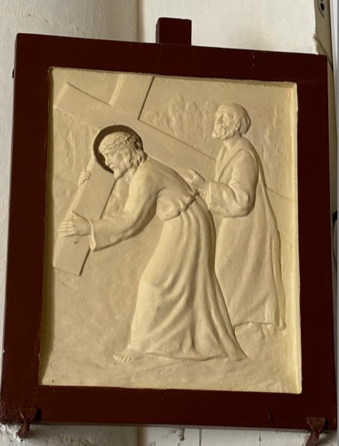 5e station : Simon de Cyrène aide Jésus à porter sa croix. |