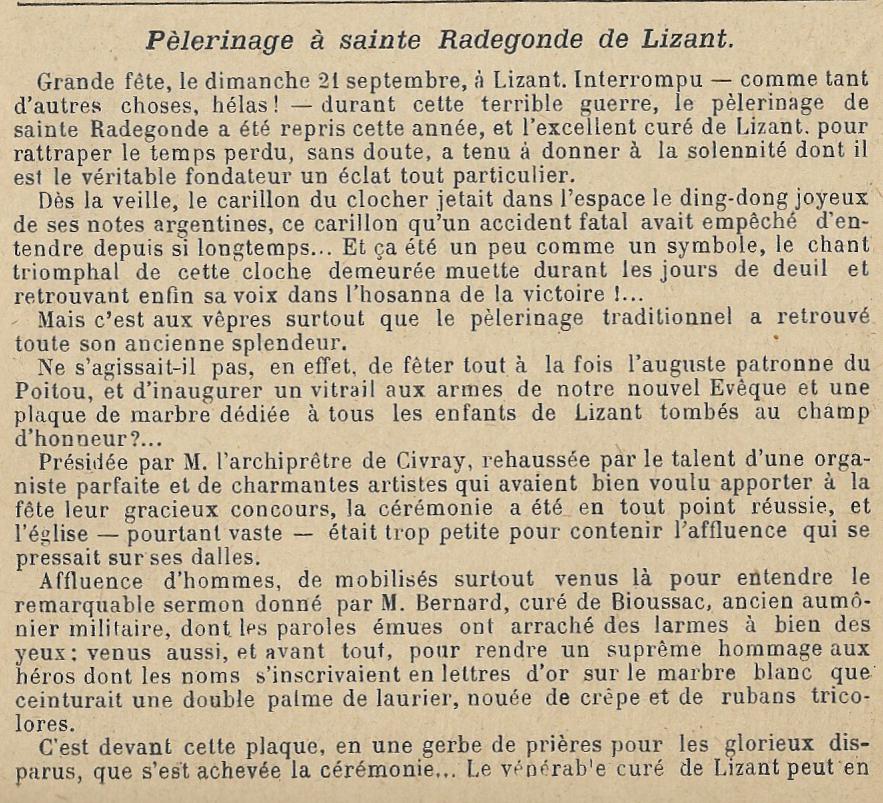 FRANCOIS DOUSSAINT CURE PENDANT 33 ANS DE LA PAROISSE SAINTS JUNIEN ET RADEGONDE DE LIZANT .. DECEDE LE 21 OCTOBRE 1867 .. DANS SA 57ème année … ...