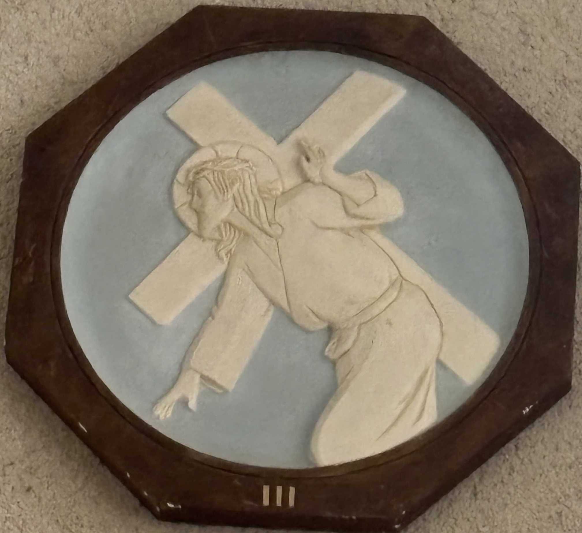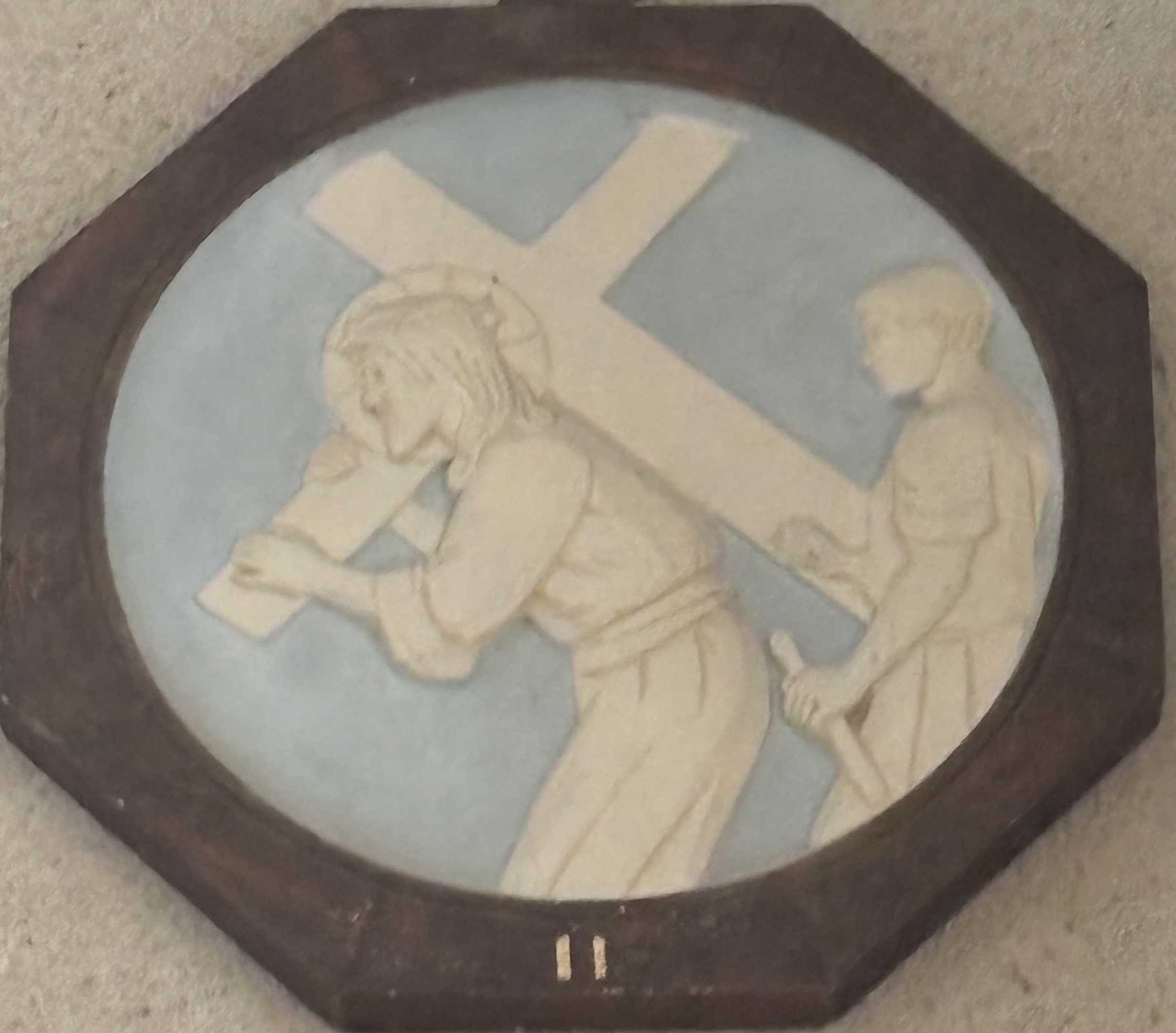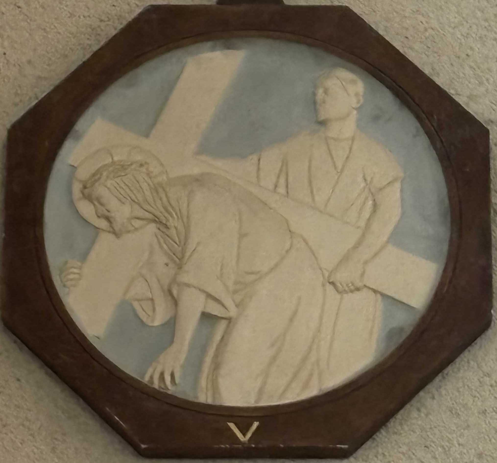 5e station : Simon de Cyrène aide Jésus à porter sa croix. |
