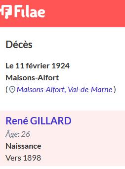 A mon fils René GILLARD décédé le 11 Février 1924 à 26 ans |