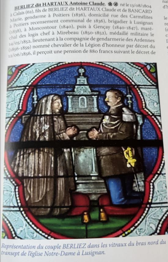 Lui Antoine Claude BERLIEZ DIT HARTAUX brigadier de gendarmerie à MONCONTOUR (86) 35 ans né à CALAIS le 13/08/1804