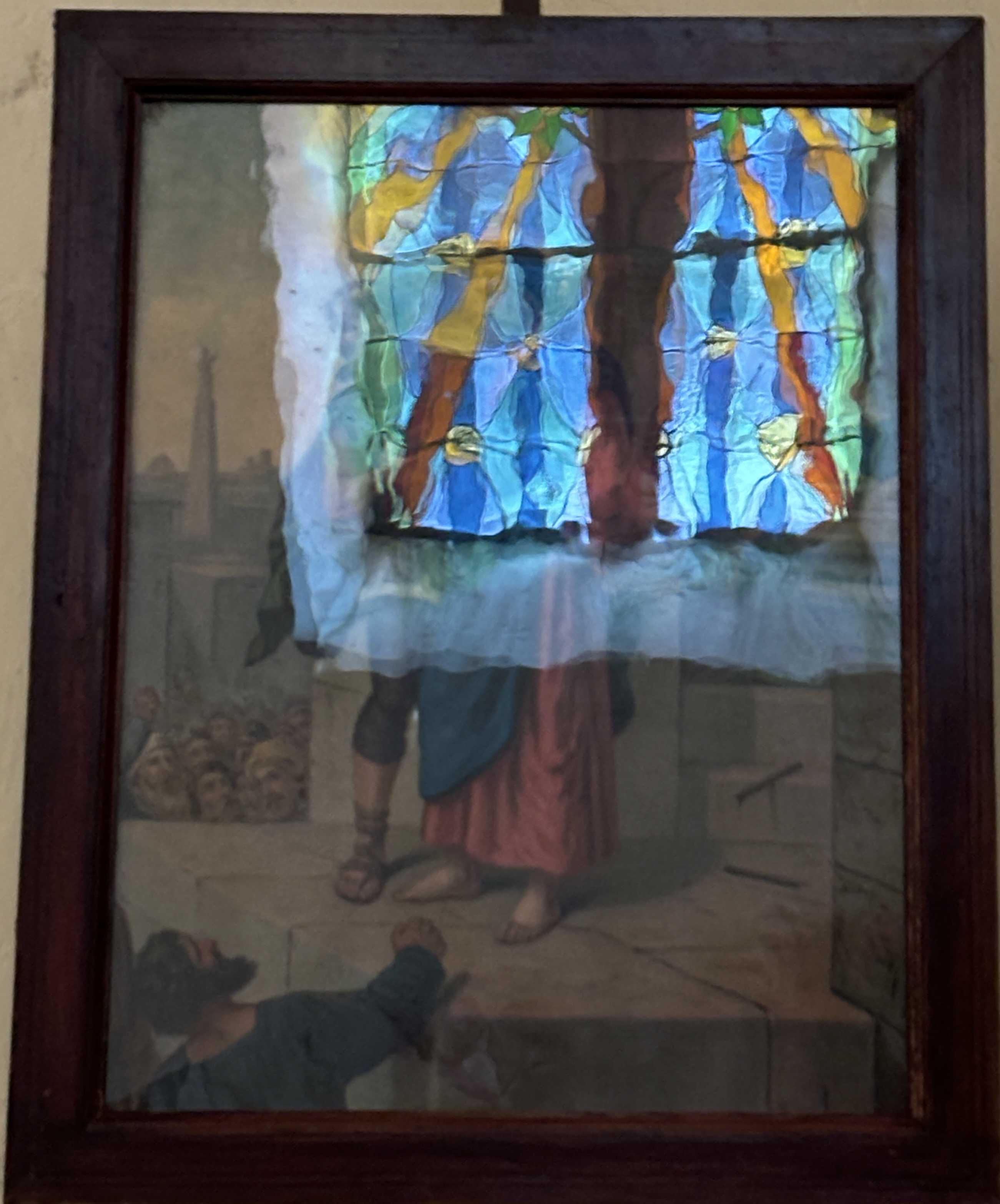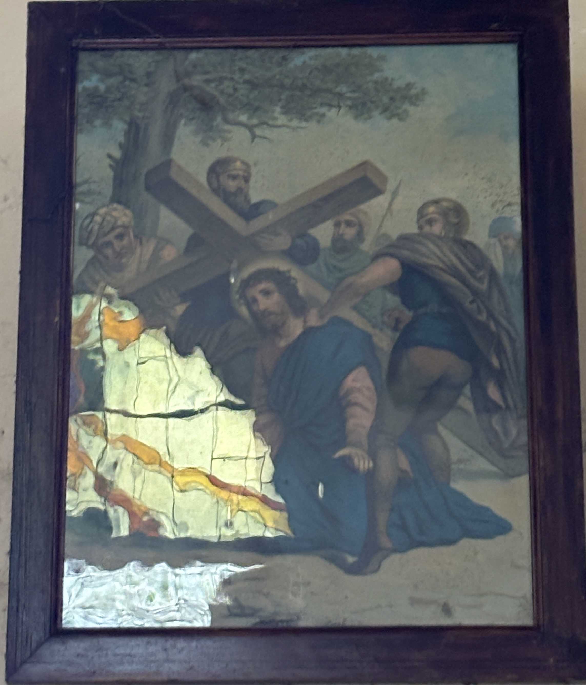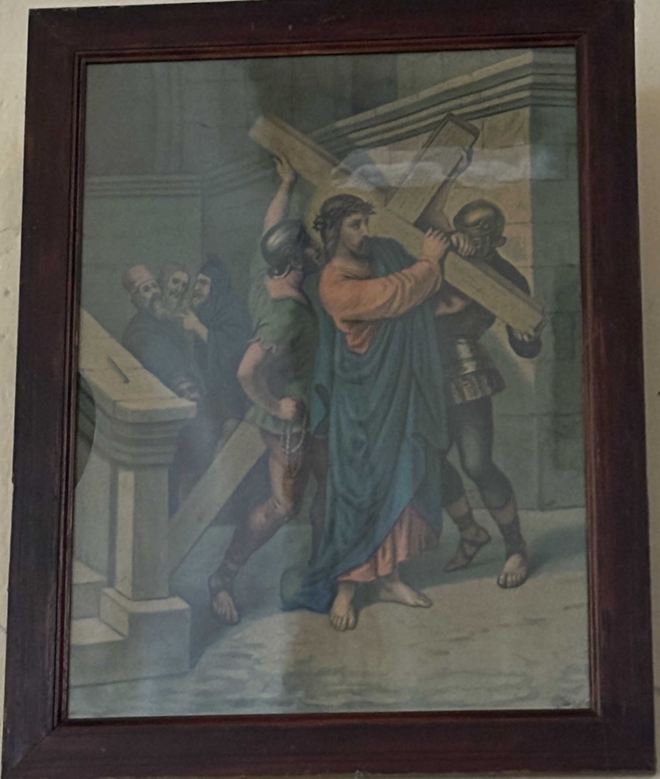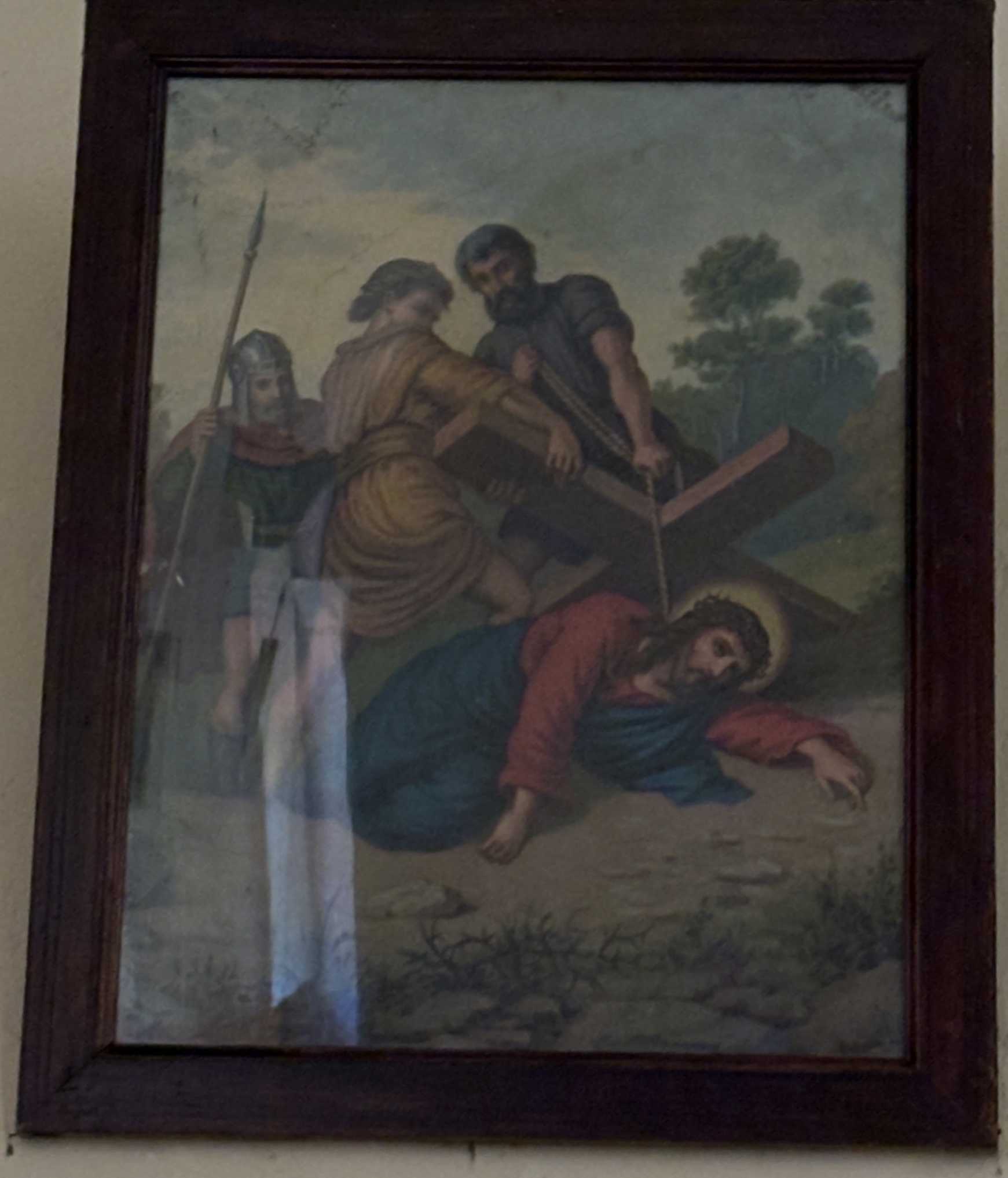 5e station : Simon de Cyrène aide Jésus à porter sa croix. |