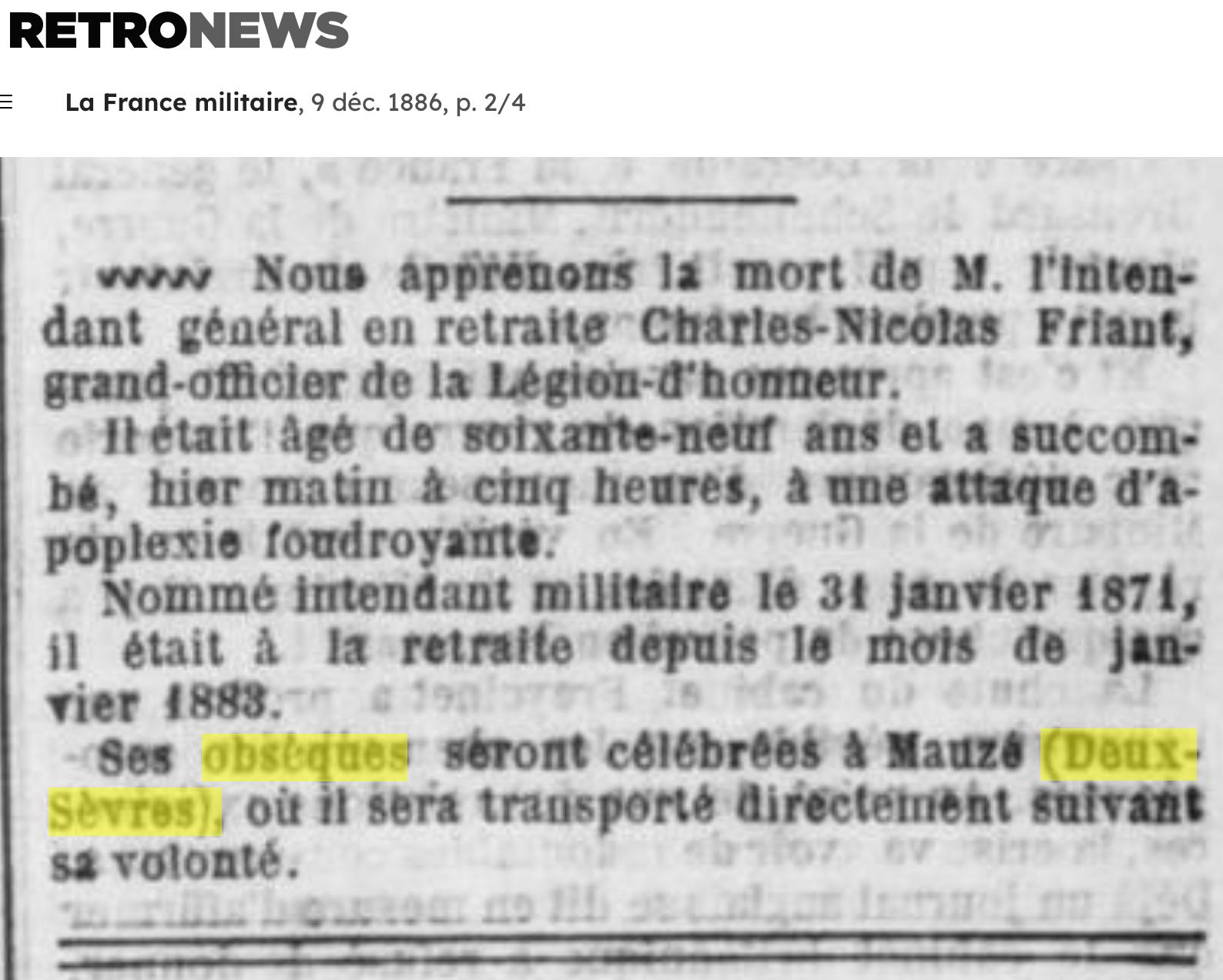 (lundi), Niort, 79, avec Charles Nicolas FRIANT, intendant général