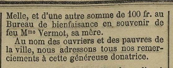 Elisabeth Emma BORDIER VVE VERMOT née le 14 Juin 1824 décédée le 16 9bre 1904