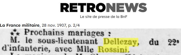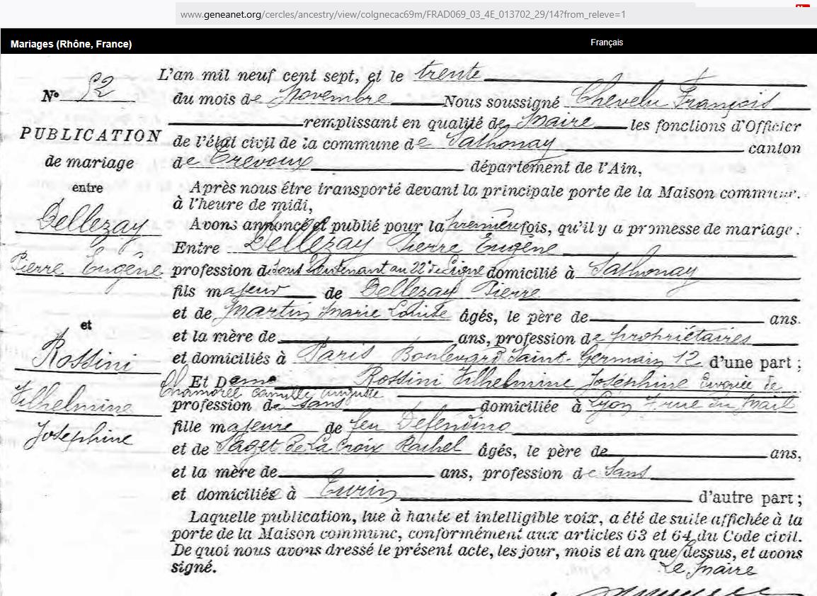 marié le 17/12/1907 à LYON avec ROSSINI Villiemine