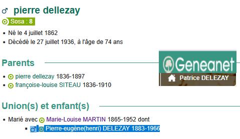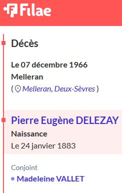dont H Pierre-eugène(henri) DELEZAY 1883-1966 marié avec Madeleine VALLET 1911-2003