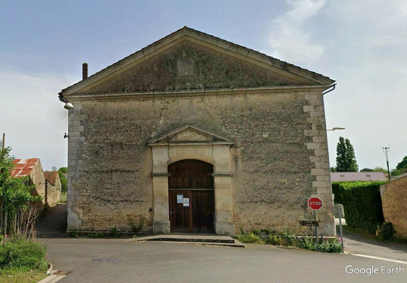 Historique : construit vers 1830, agrandi et amélioré de 1837 à 1841. Le temple est aujourd'hui une salle municipale.