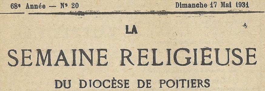 Manque le N° 19/1931 de la semaine religieuse de Poitiers concrnant les Nocs d'or de Mr e Chanoine CLUZEAU |