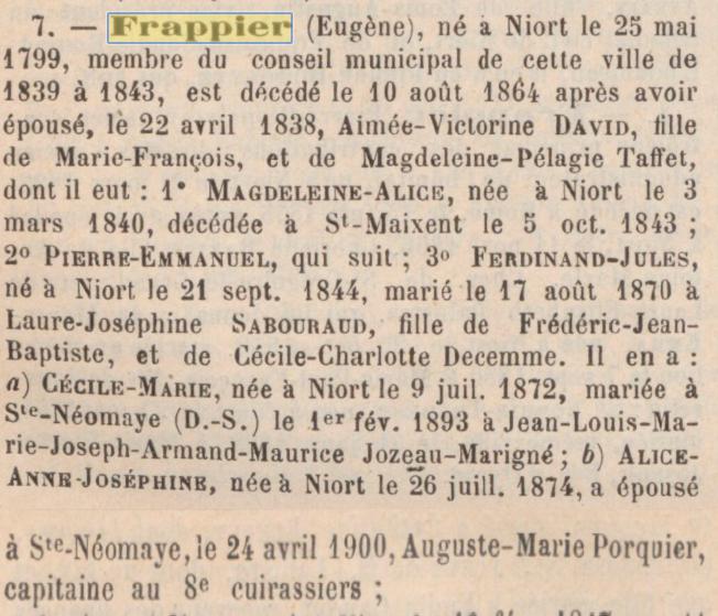 FAMILLES DAVID ET FRAPPIER EUGENE |