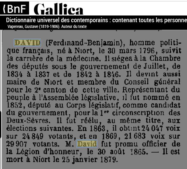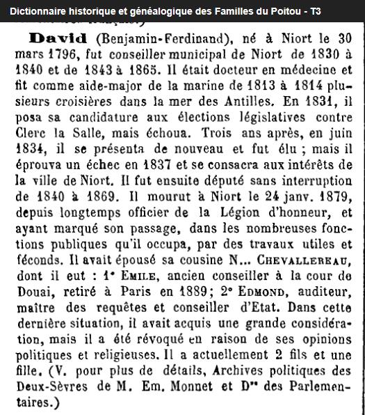André Emile DAVID Conseiller honoraire décédé à Paris .. dans sa 77éme année |