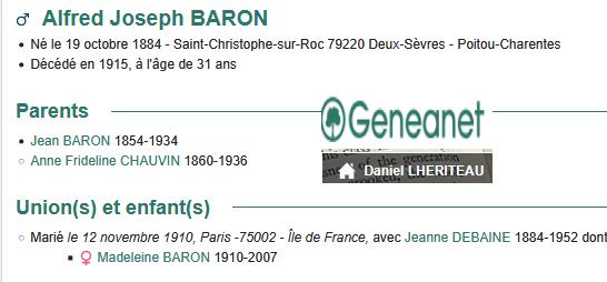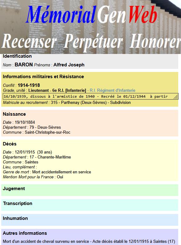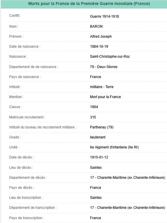 Lieutenant BARON Alfred (1884/1915) |