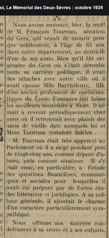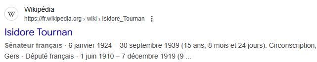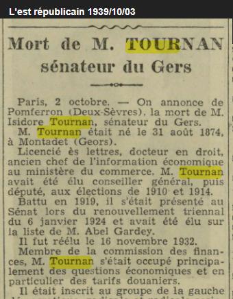 Isidore Tournan, né le 14 août 1874 à Montadet (Gers) et mort le 30 septembre 1939 à Fomperron (Deux-Sèvres), est un homme politique français. |
