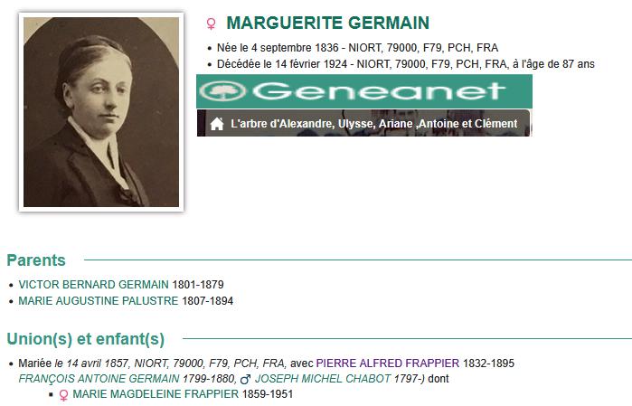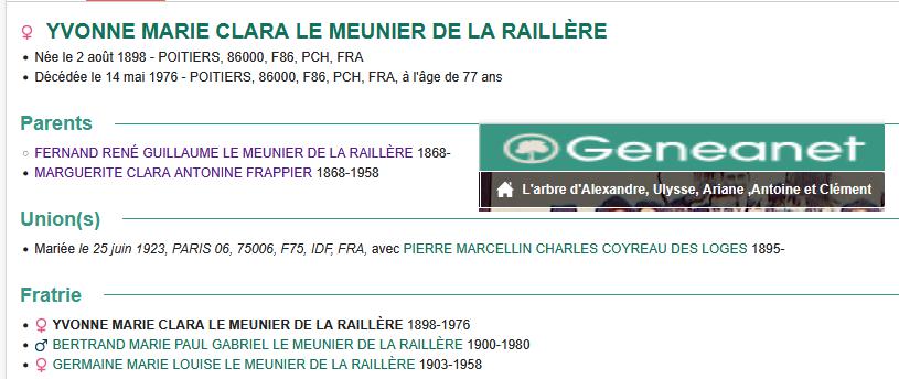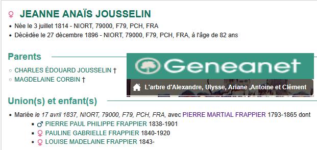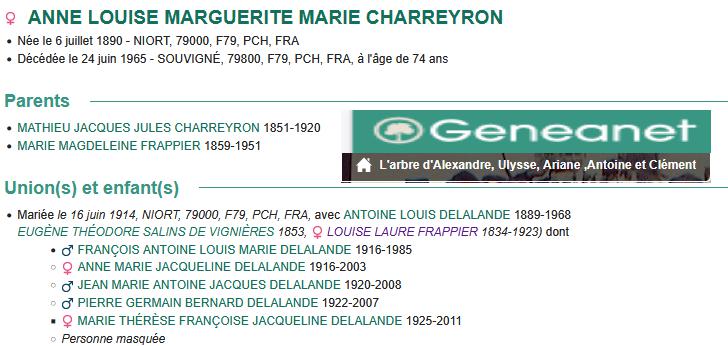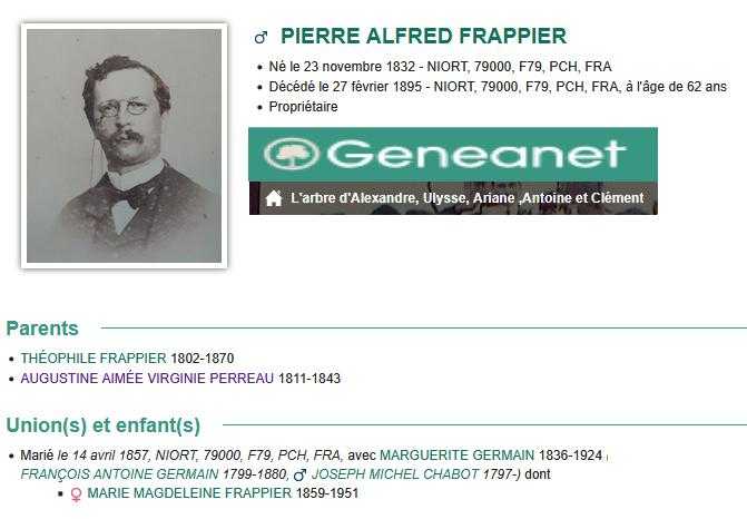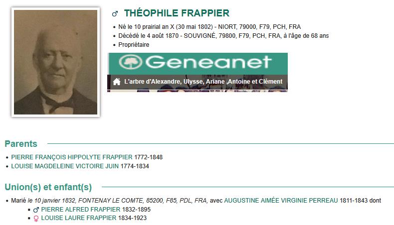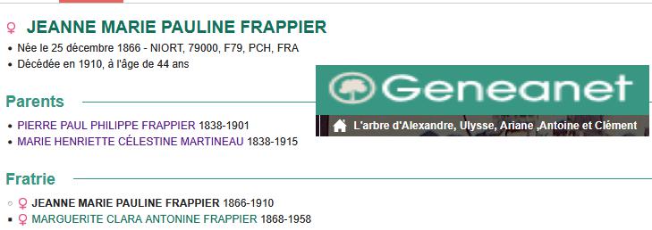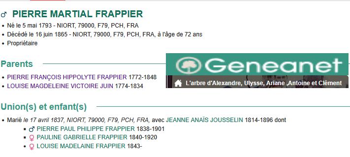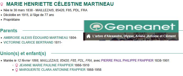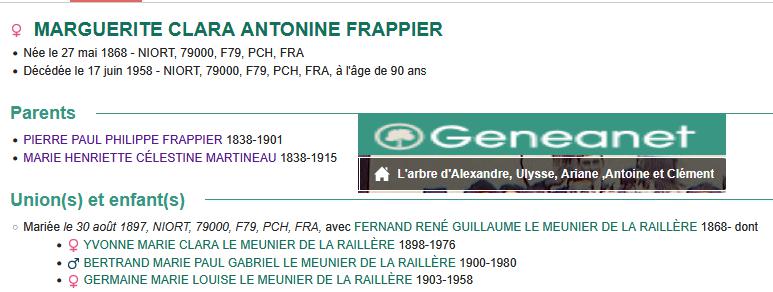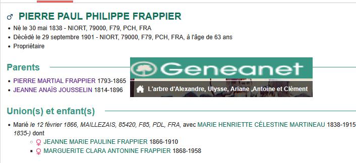 MARTIAL FRAPPIER 1814 - 1896 – 1838 – 1901 – CELESTINE MARIE HENRIETTE MARTINEAU VEUVE .. FRAPPIER 1858 – 1915 – 1866 - 1910 – 1865 – 1958 – NEE DE LA RAILLERE 1899 - 1976 |