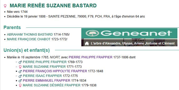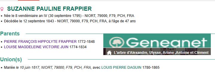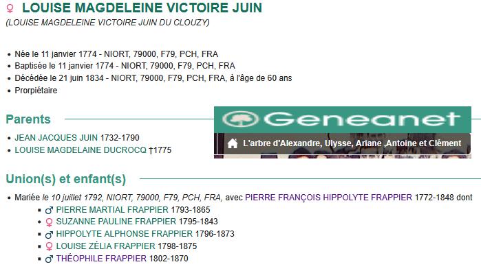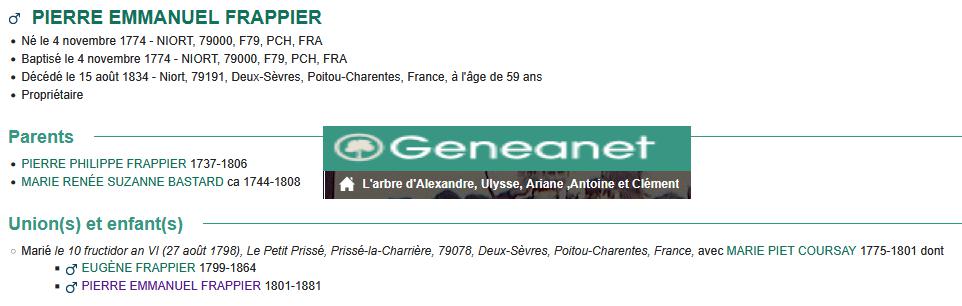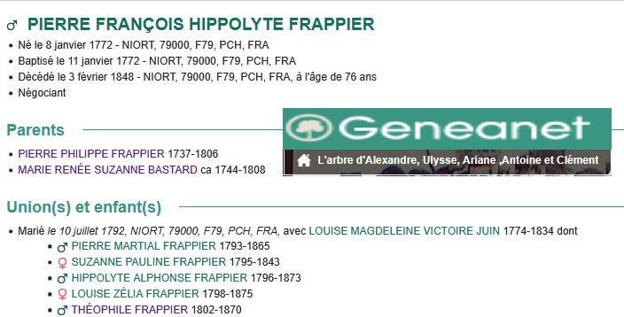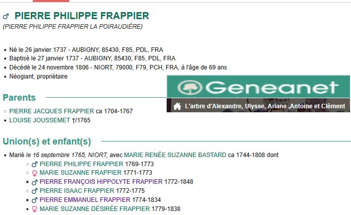 PIERRE PHILIPPE FRAPPIER DE LA POYRAUDIERE 1737 – 1806 1744 – 1808 – PIERRE FRANCOIS HIPPOLYTE FRAPPIER DE LA POYRAUDIERE 1772 – 1848 MAGDELAINE LOUISE VICTOIRE JUIN 1774 – 1834 – 1795 - 1843