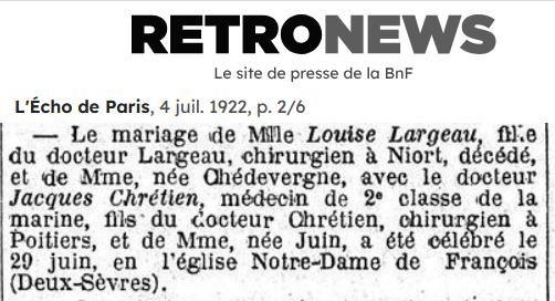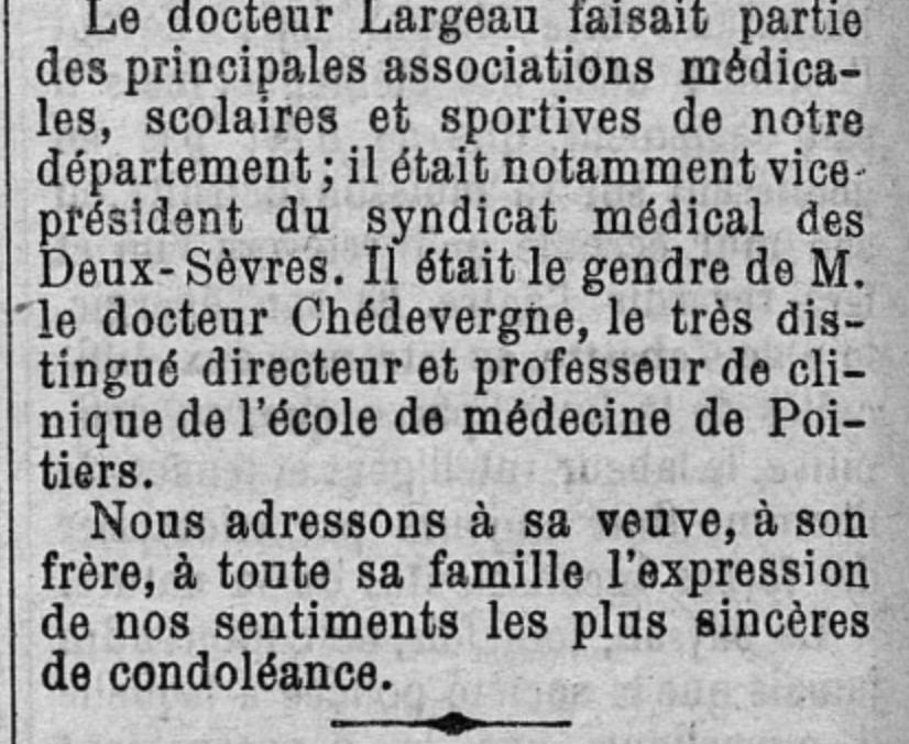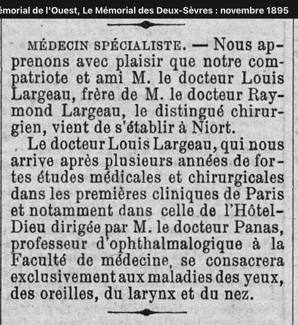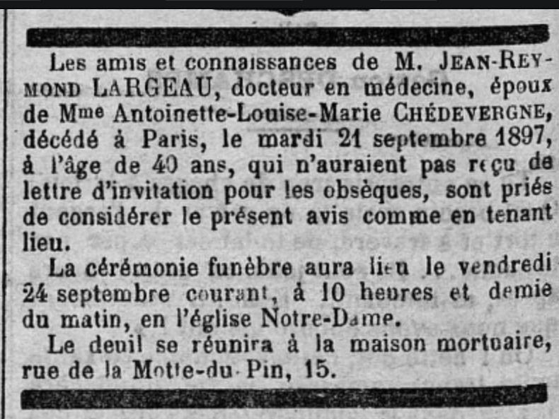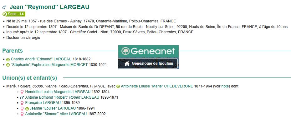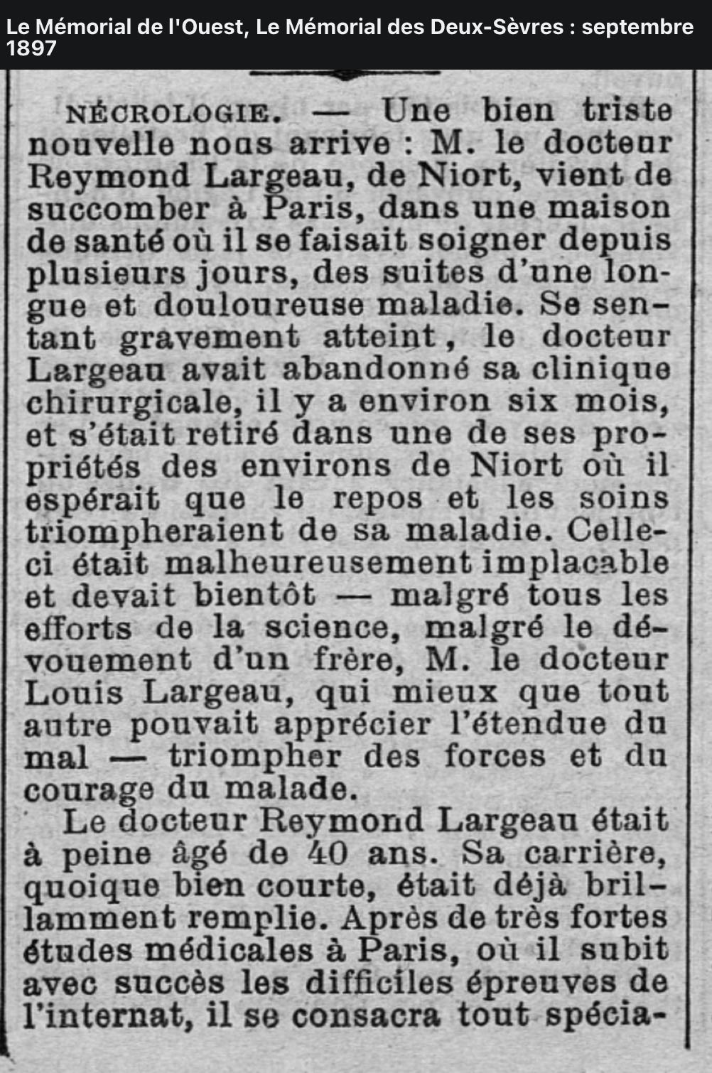 REYMOND LARGEAU DOCTEUR EN MEDECINE 1857 – 1897 – HENRIETTE LARGEAU 1892 - 1894 |
