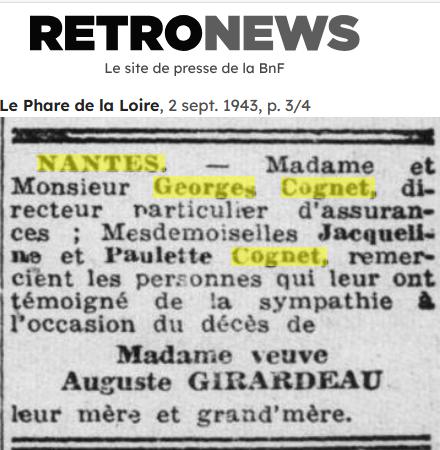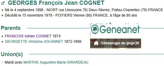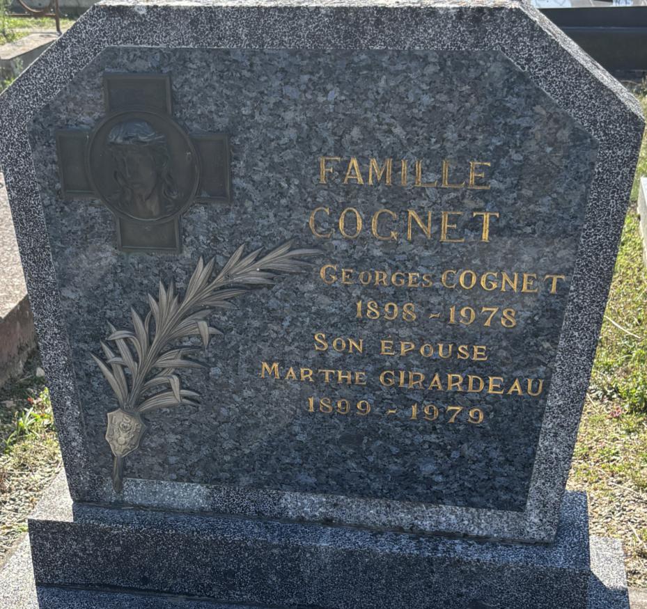 GEORGES COGNET 1898 – 1978 DON EPOUSE MARTHE GIRARDEAU 1899 - 1979