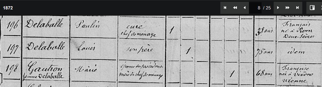 En 1872 le curé est DELABALLE Paulin 38 ans donc né vers 1844 à ROM (79) |