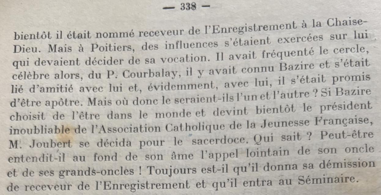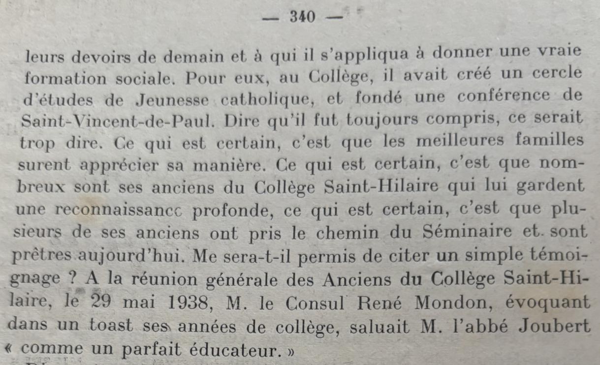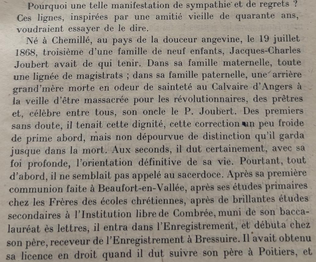Ici Repose le corps de Mr l'Abbé Jacques JOUBERT Chanoine Honoraire Archiprêtre Curé de St Laurent de PARTHENAY pendant 18 ans décédé le 21 Avril 1939 à l'âge de 70 ans