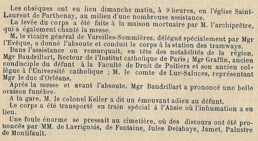 Né le 1er décembre 1834 - Parthenay (Deux-Sèvres) Décédé le 15 mai 1915 - "rue St-Laurent" Parthenay (Deux-Sèvres), à l'âge de 80 ans Avocat