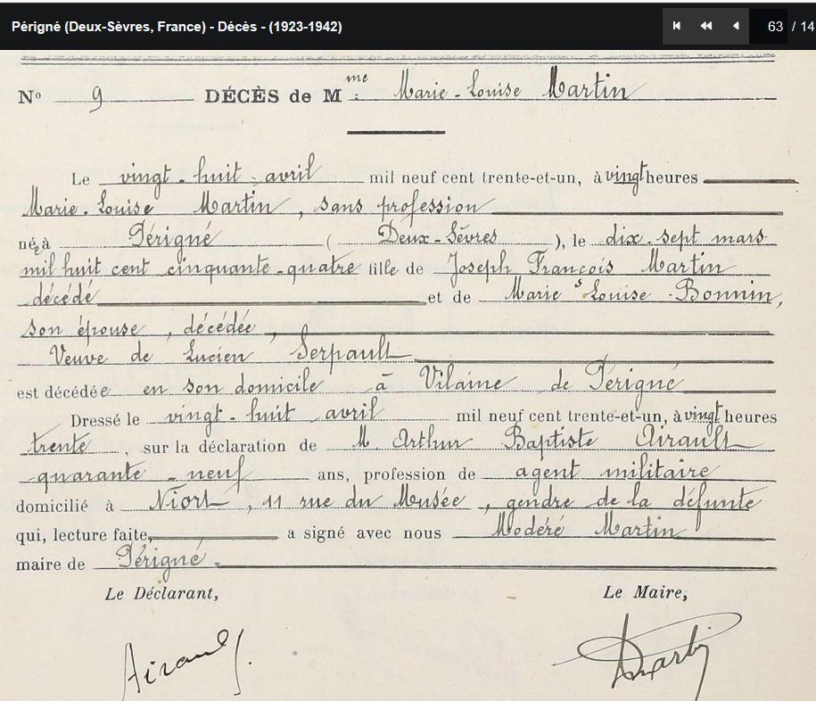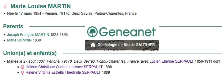 Marie Louise MARTIN veuve SERPAULT (1854/1931)