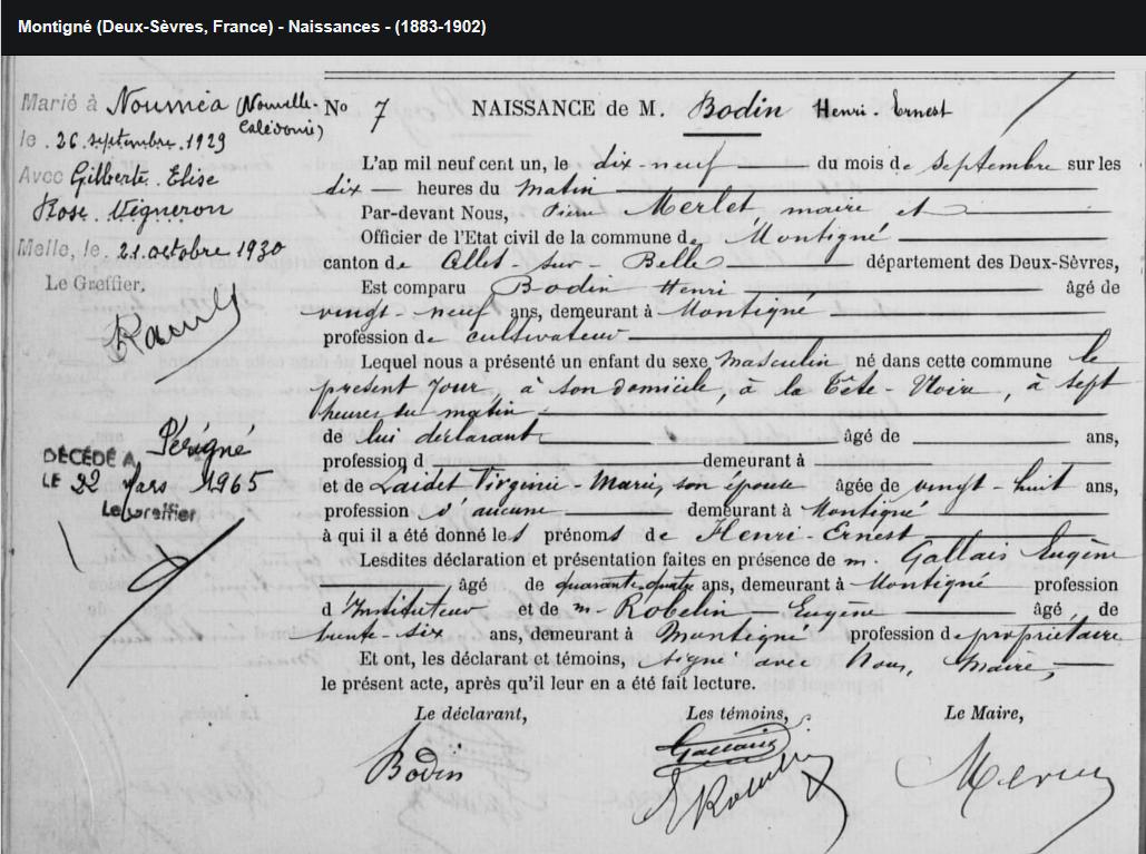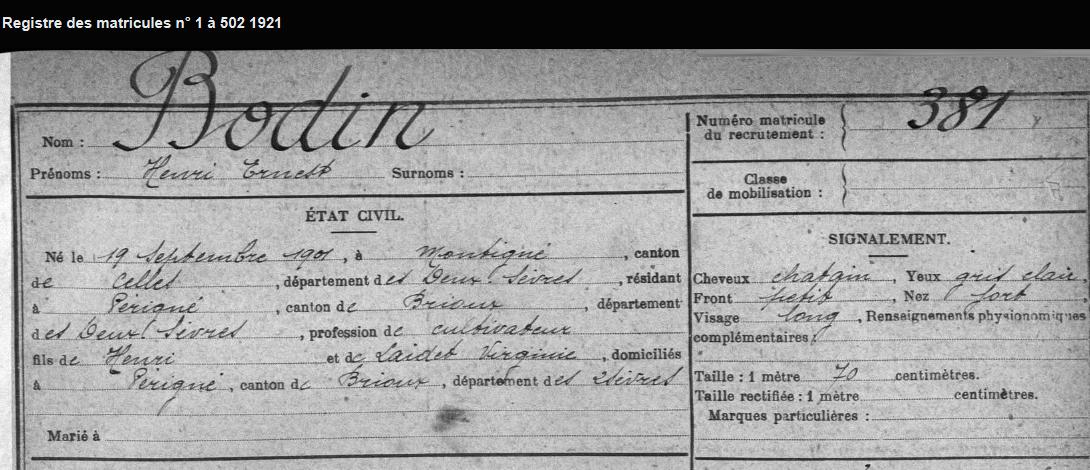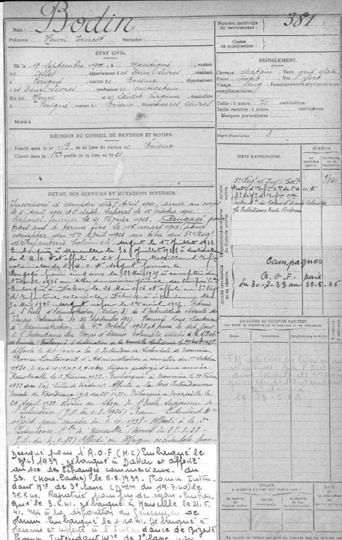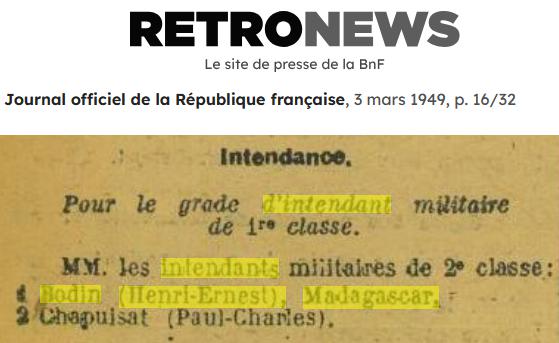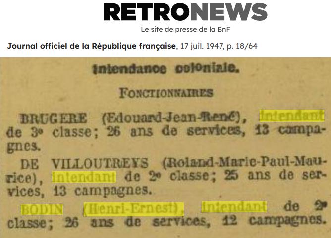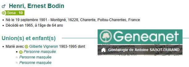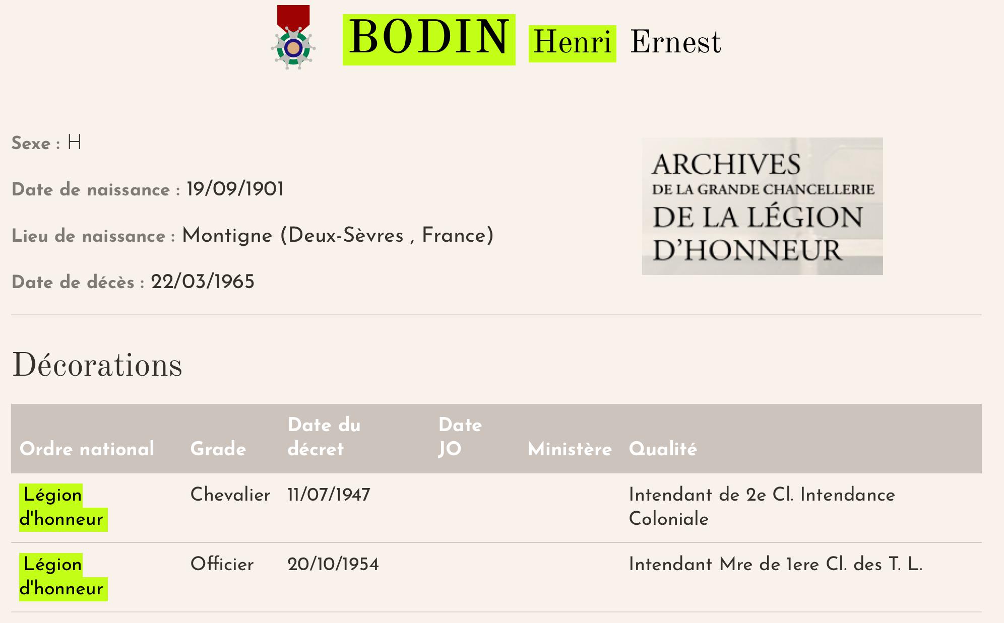 HENRI BODIN INTENDANT MILITAIRE DE 1ERE CLASSE E.R. OFFICIER DE LA LEGION D'HONNEUR 1901 – 1965 GILBERTE VIGNERON 1903 - 1995 |