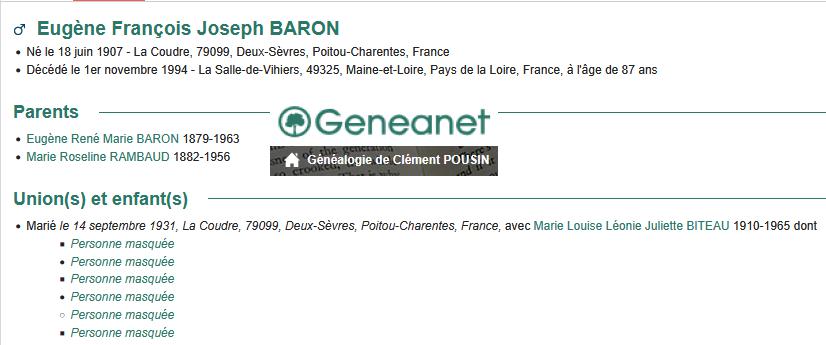 Ses parents sont àsa naissanc, cultivateurs à LA COUDRE (79) |