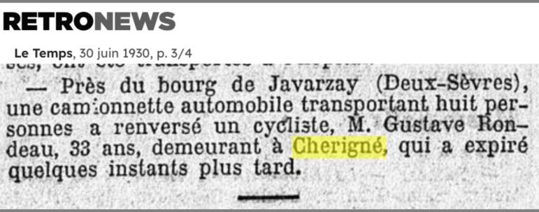 RANDEAU Gustave (1898 – 1930) une des premières victimes de la route |