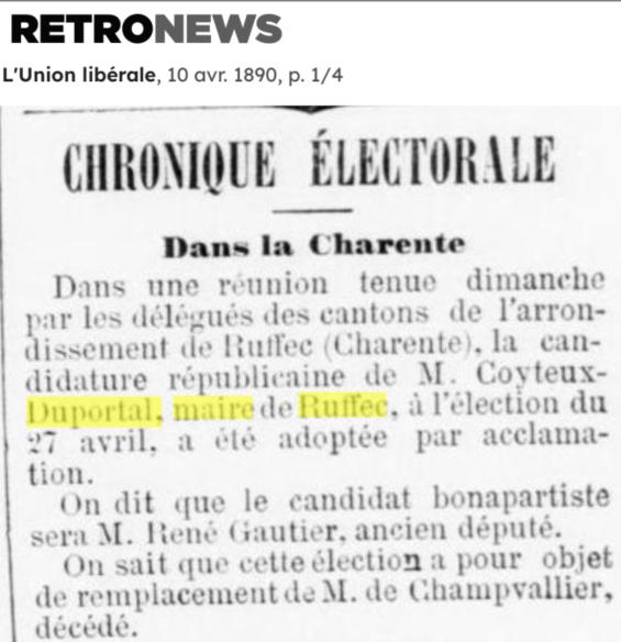 Est inhumé dans cette chapelle du cimetière de RUFFEC (16) ===>> |