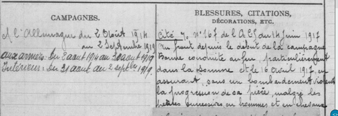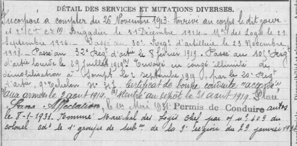 le 26/11/1913dans l'artillerie, il fit la guerre 14/18 dans la