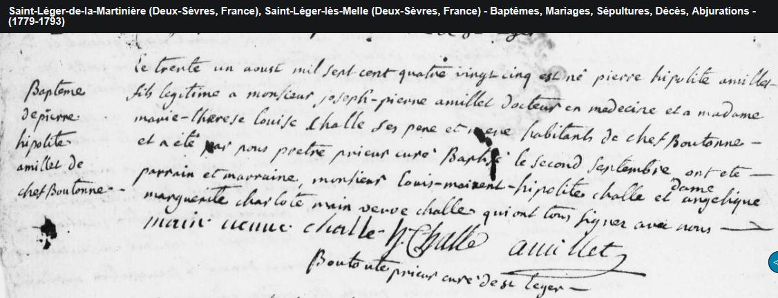 PIERRE HYPPOLYTE AMILLET SAINT LEGER DE MELLE (DEUX SEVRES) 178. 1830 PARIS