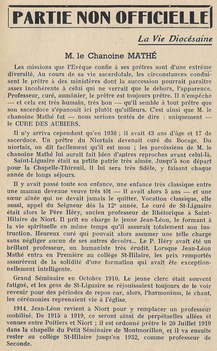 Chanoine Jean Léon MATHE (1893/1959) |
