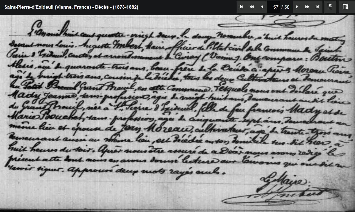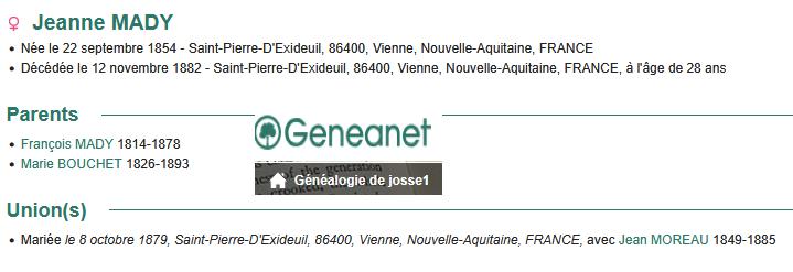 ICI REPOSE JEANNE MADY, FILLE DE MARIE BOUCHET EPOUSE DE JEAN MORAUD DECEDEE LE 24 9BRE A L'AGE DE 28 ANS |
