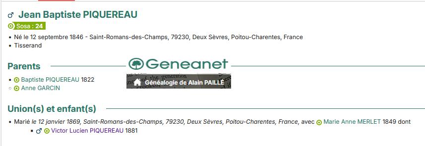 ICI REPOSE Le Corps de Baptiste PIQUEREAU Epoux de Anne LERLET Décédé à la Grande .. le .. |