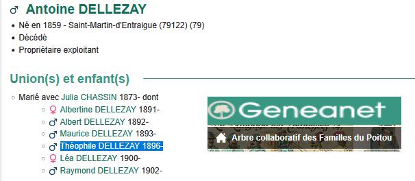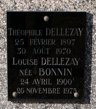 THEOPHILE DELLEZAY 25 FEVRIER 1897 30 AOUT 1970 LOUISE DELLEZAY NEE NONNIN 24 AVRIL 1900 26 NOVEMBRE 1975 |