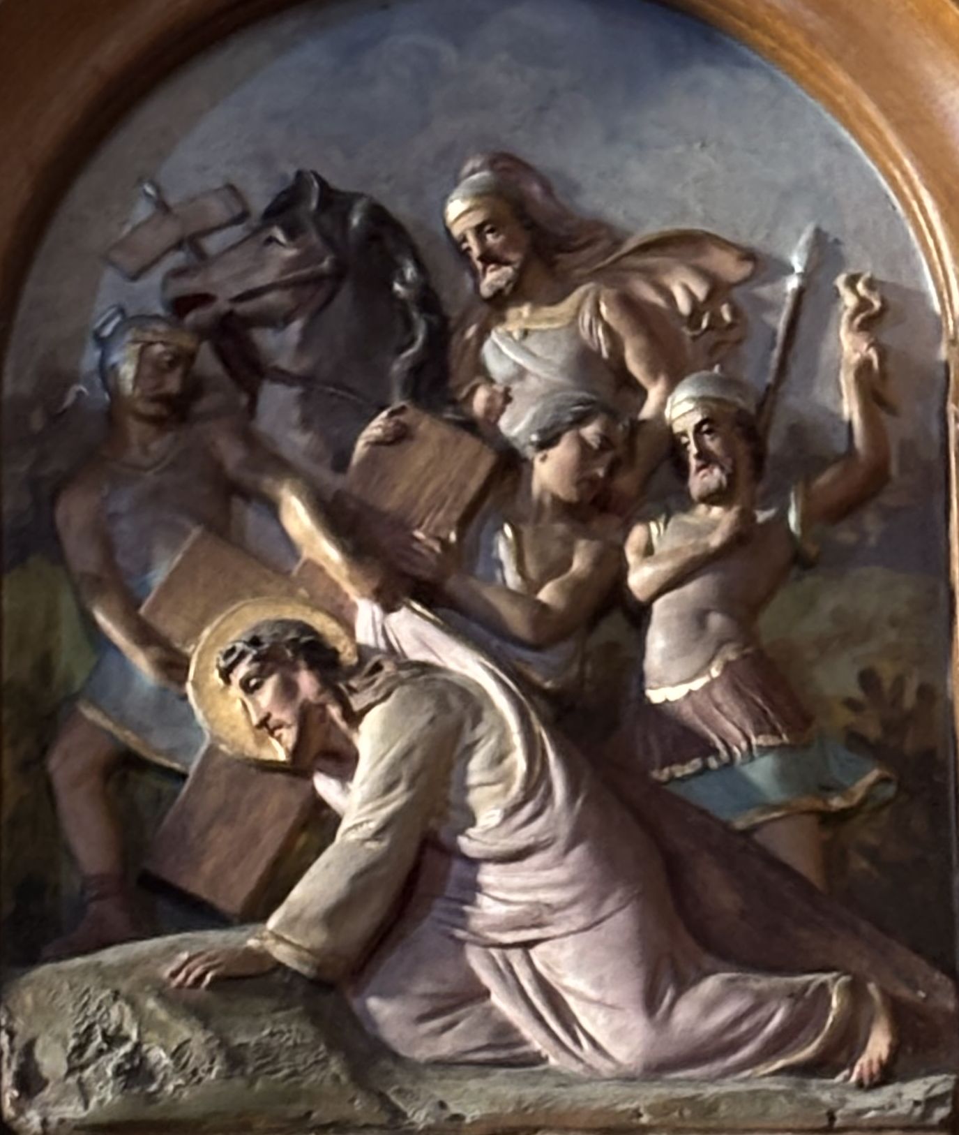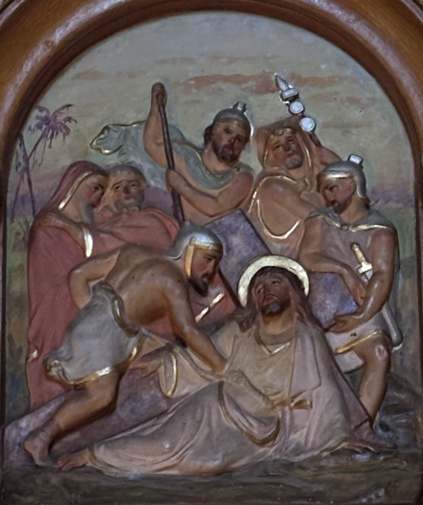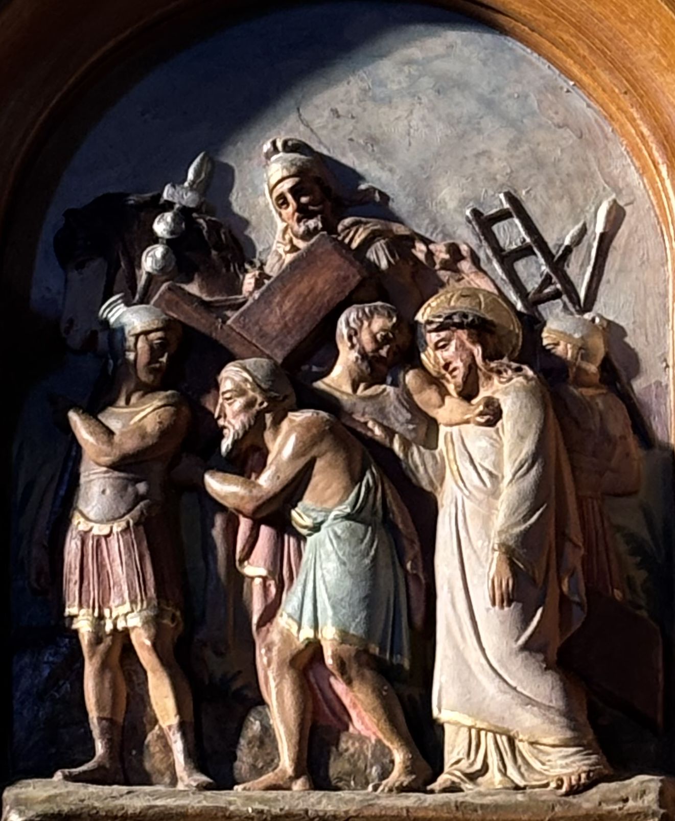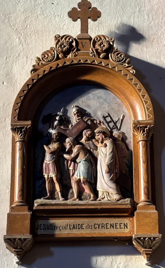 5e station : Simon de Cyrène aide Jésus à porter sa croix. |