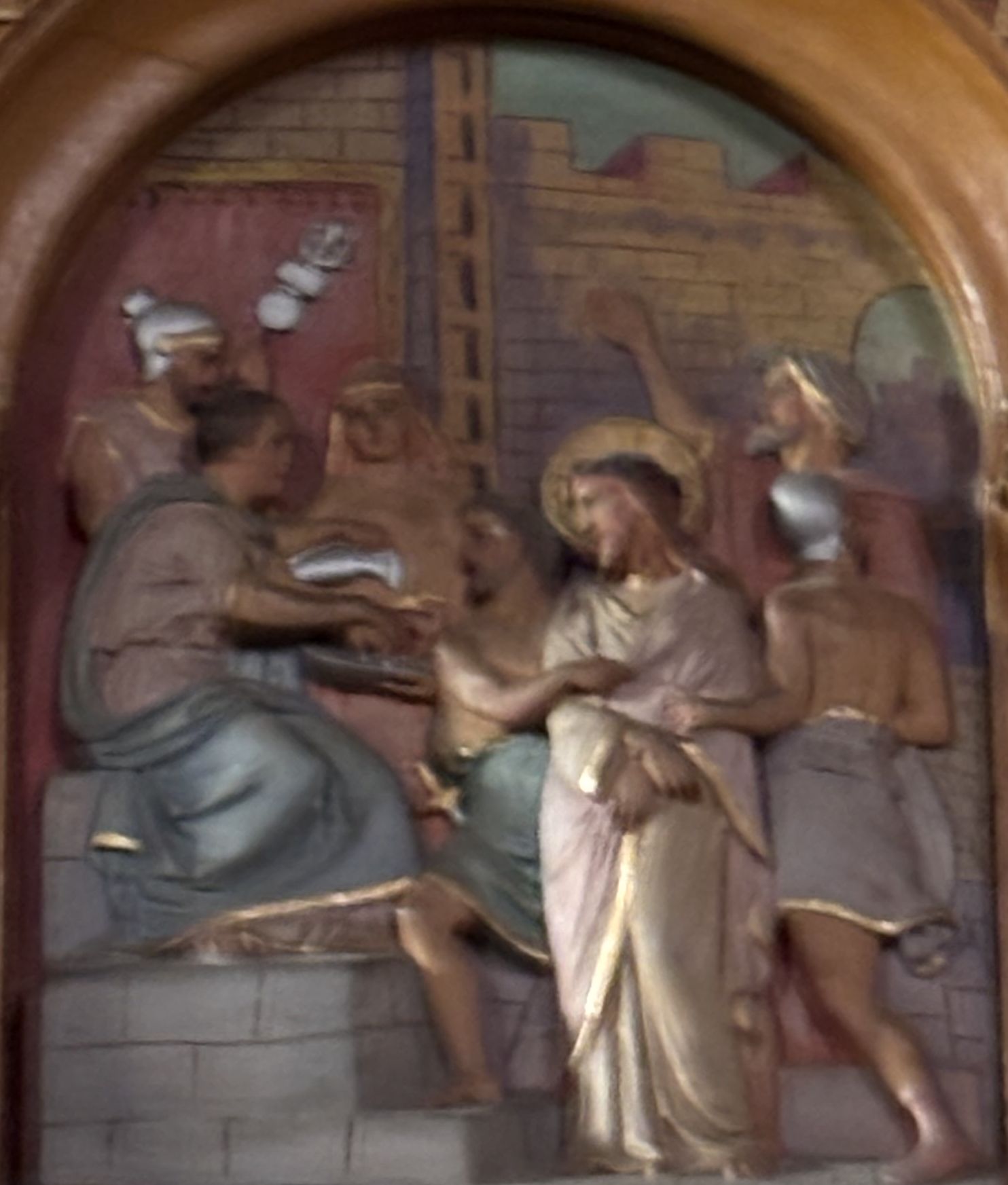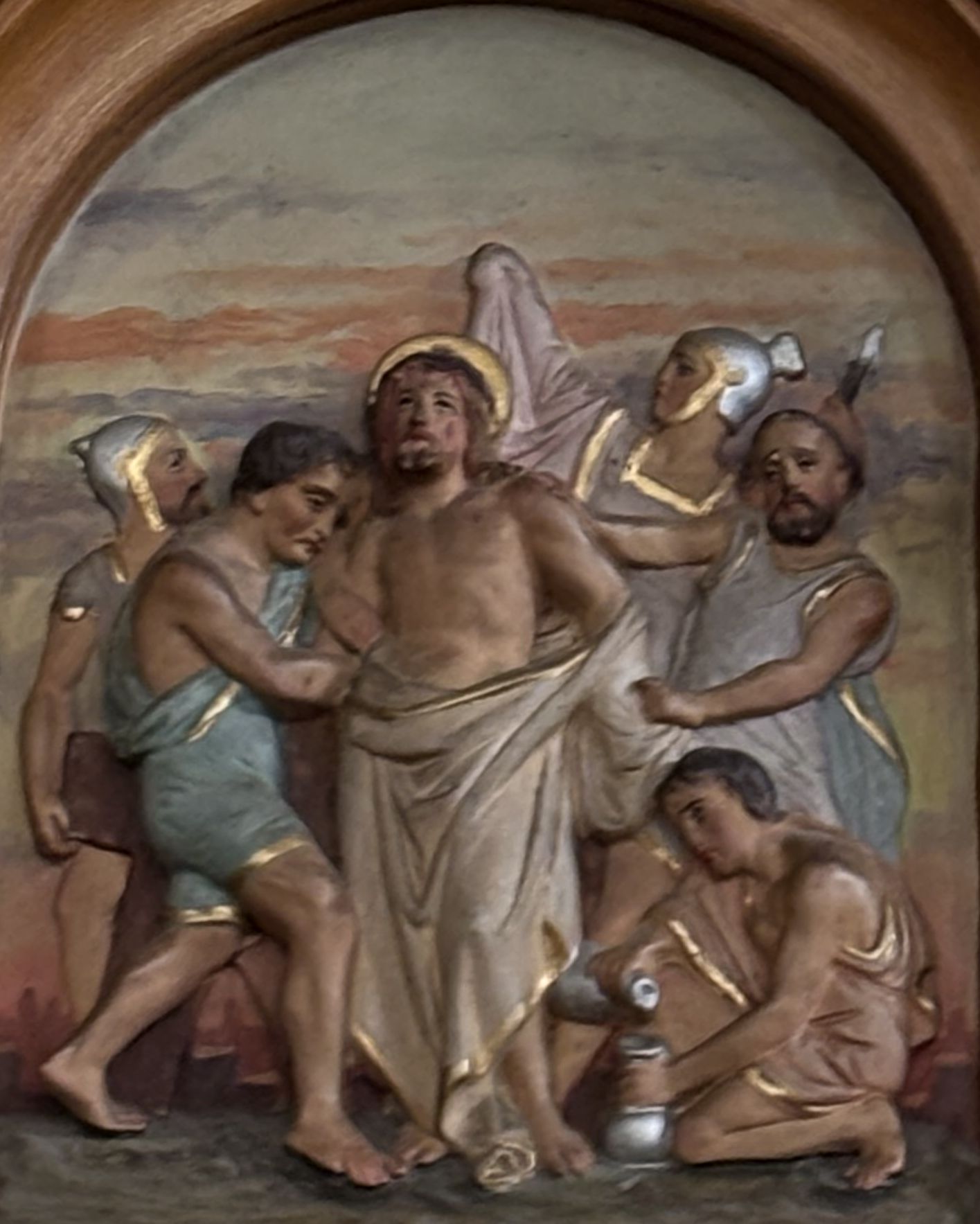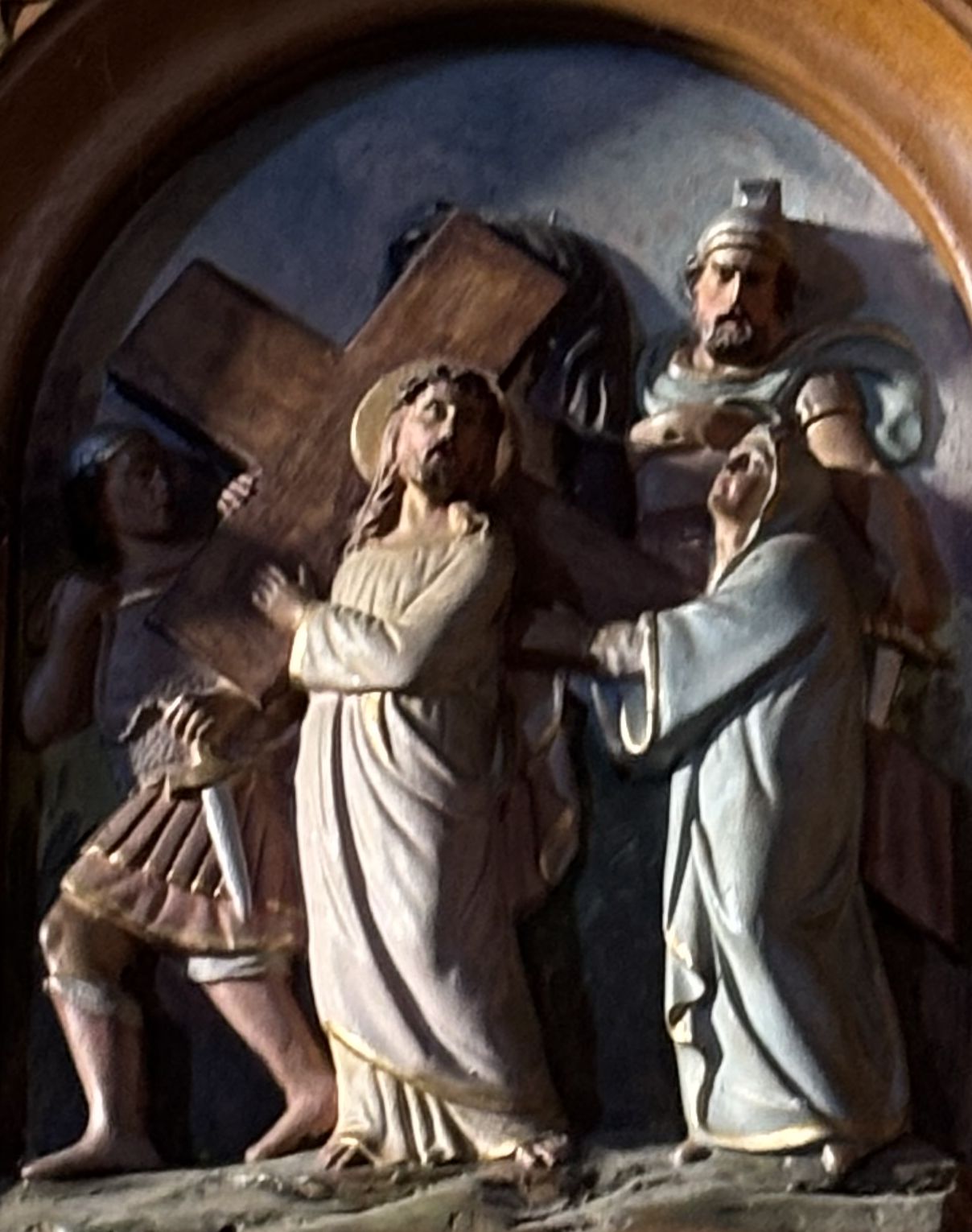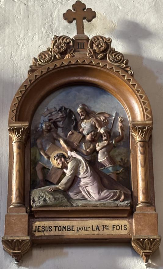 5e station : Simon de Cyrène aide Jésus à porter sa croix. |