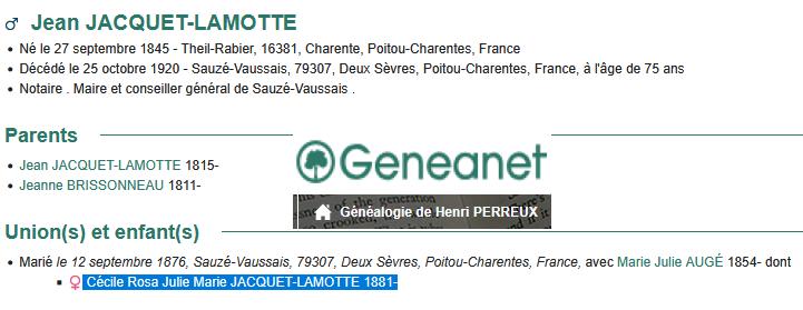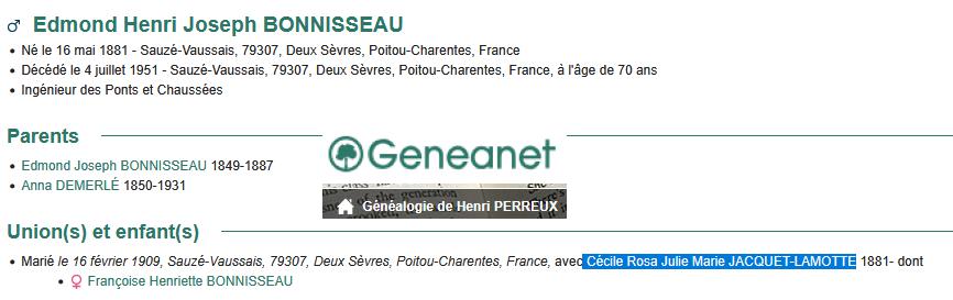 Familles JACQUET-LAMOTTE / BONNISSEAU |