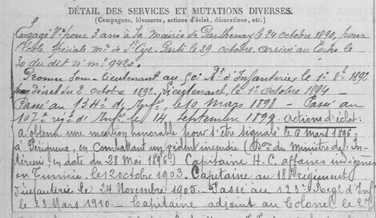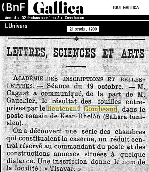 1901, jeune lieutenant en TUNISIE, il a participé à des fouilles archéologiques et en a écrit un livre