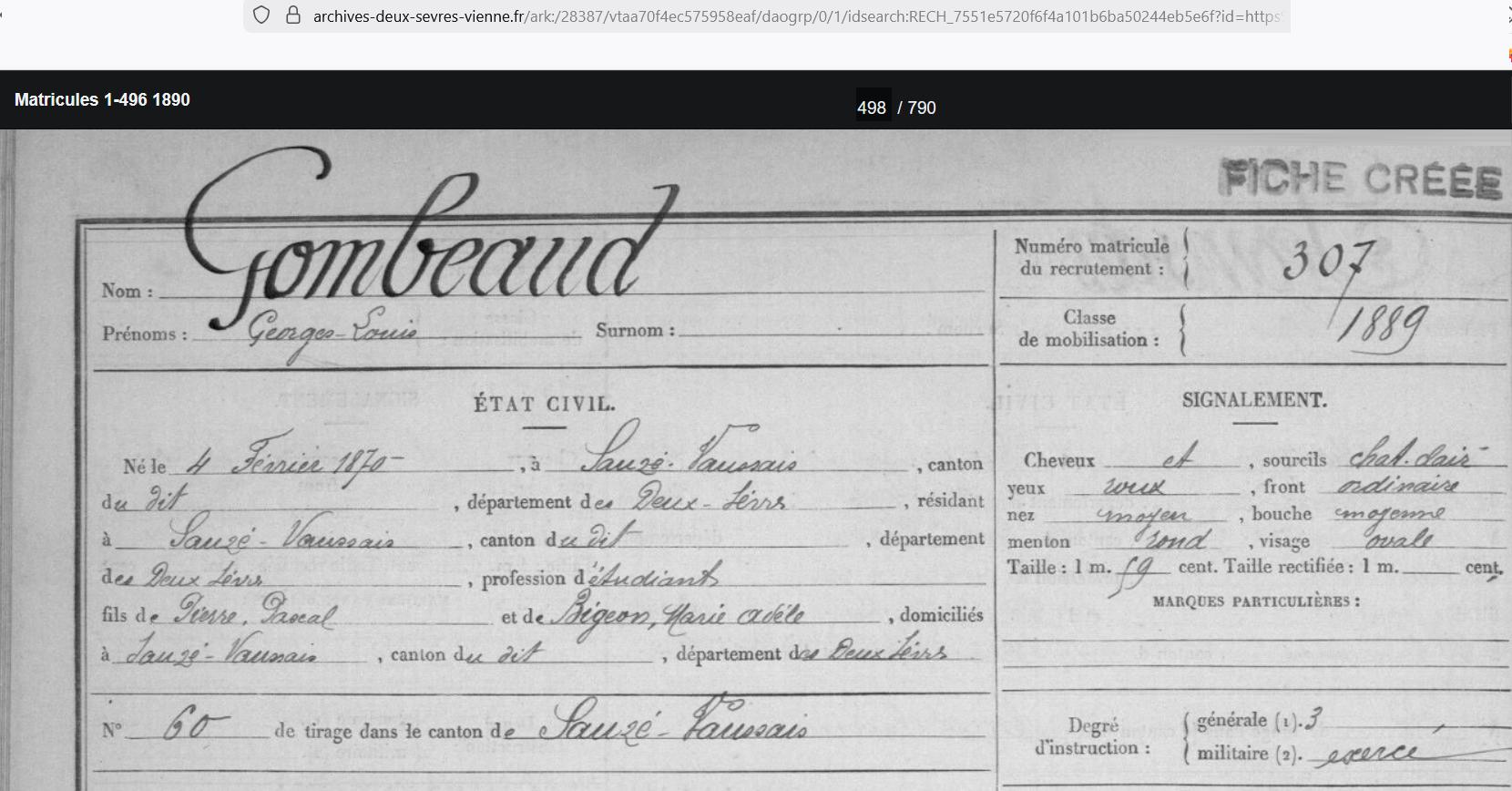 GOMBEAUD Georges Louis, jeune lieutenant