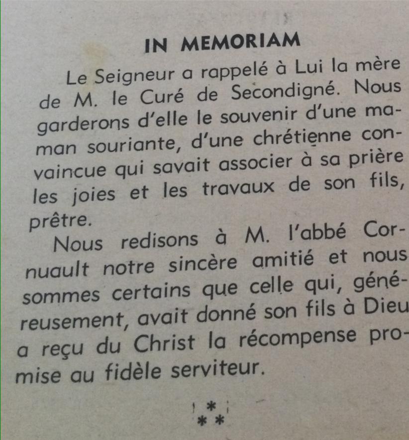 ABBE HENRI CORNUAULT CURE DE SECONDIGNE S/BELLE DE 1932 A 1965 |