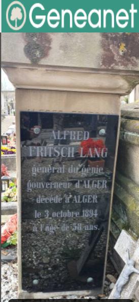 ALFRED FRITSCH LANG général du génie gouverneur d'ALGER décédé à ALGER le 3 octobre 1894 à l'âge de 58 ans |