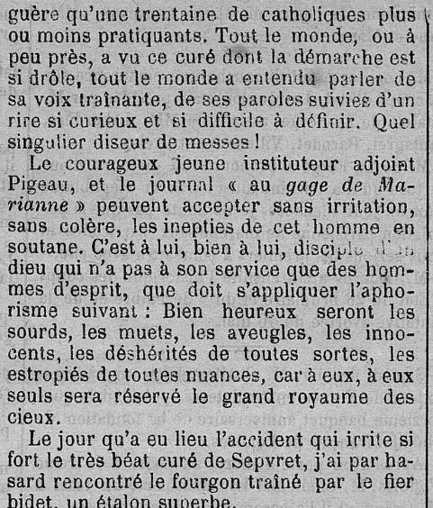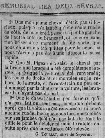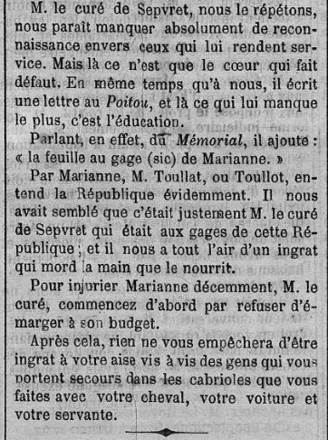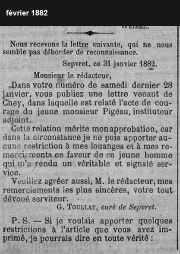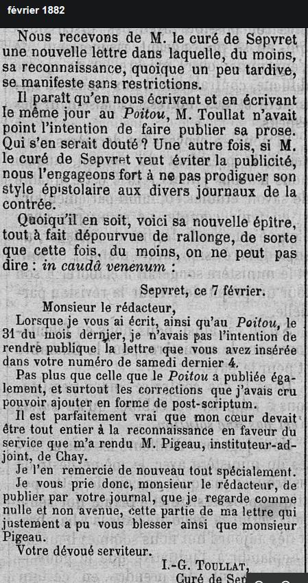 1893 - Jean-Gabriel Toulat, curé de Saint-Martin, a rendu son âme à Dieu à 53 ans après 25 années dans sa pauvre paroisse. Il est inhumé dans le cimetière de la paroisse, 18 avril 1893