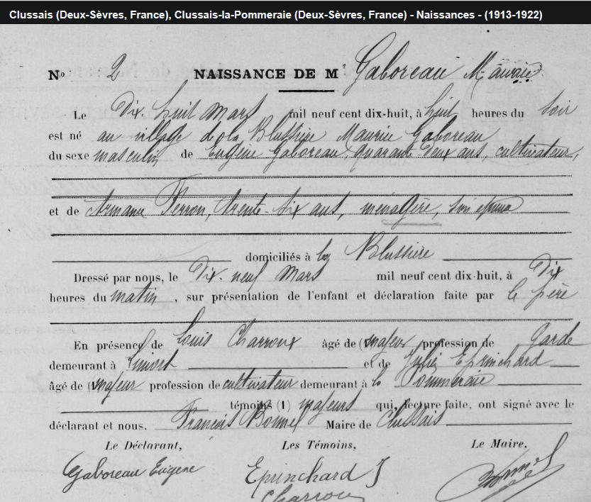 GABOREAU Maurice Soldat au 10° B.C.P Mort pour la France à BERSILLIES (Nord) le 10 Mai 1940, à l'âge de 22 ans