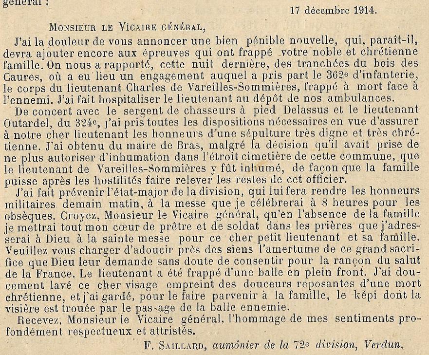 ABBE HENRI DE VAREILLES SOMMIERES 1880 – 1950 CHARLES DE LA BROUE VICOMTE DE VAREILLES SOMMIERES 1928 – 1980 VTESSE DE VAREILLES SOMMIERES NEE CHRISTINE VERHAEGHE 1934 – 2017