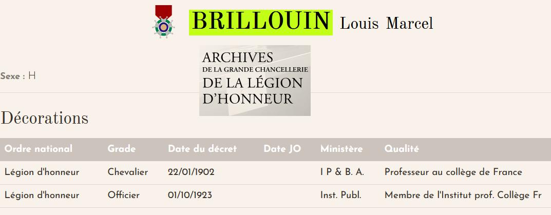BRILLOUIN Marcel (1854/1948) mathématicien et physicien |