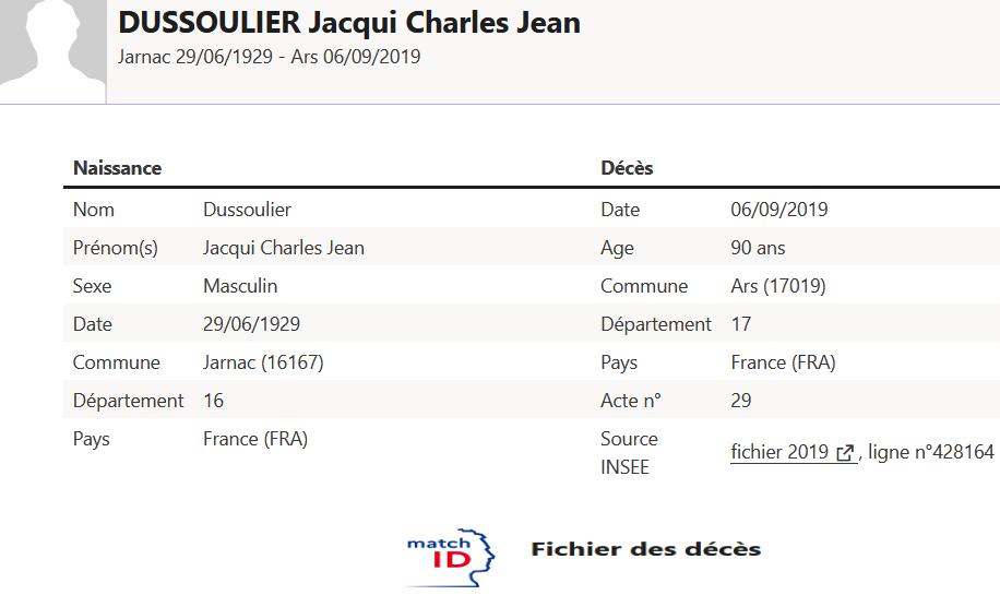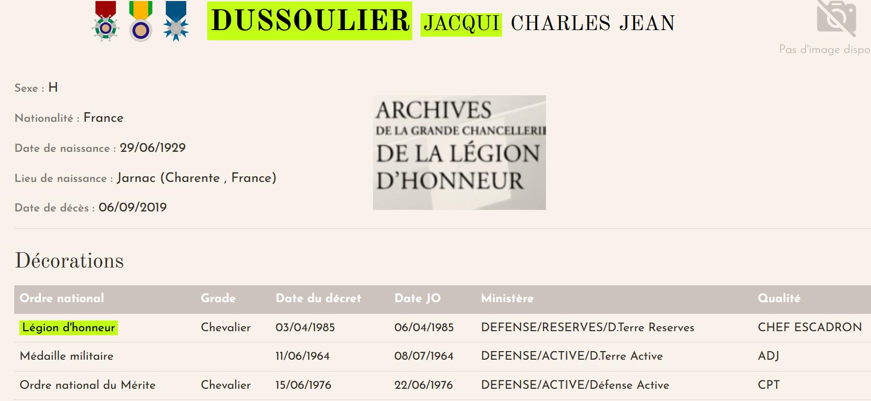 Chef d'escadron Jacqui DUSSOULIER (1929/2019) |