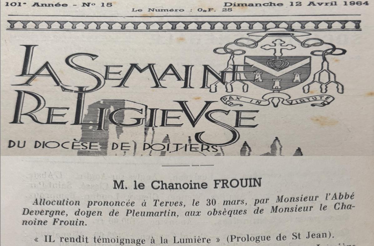 René Joseph FROUIN Né le 7 mai 1878 - Breuil-Chaussée, 79 Décédé le 27 mars 1964 - Breuil-Chaussée, 79, à l'âge de 85 ans Prêtre religieux