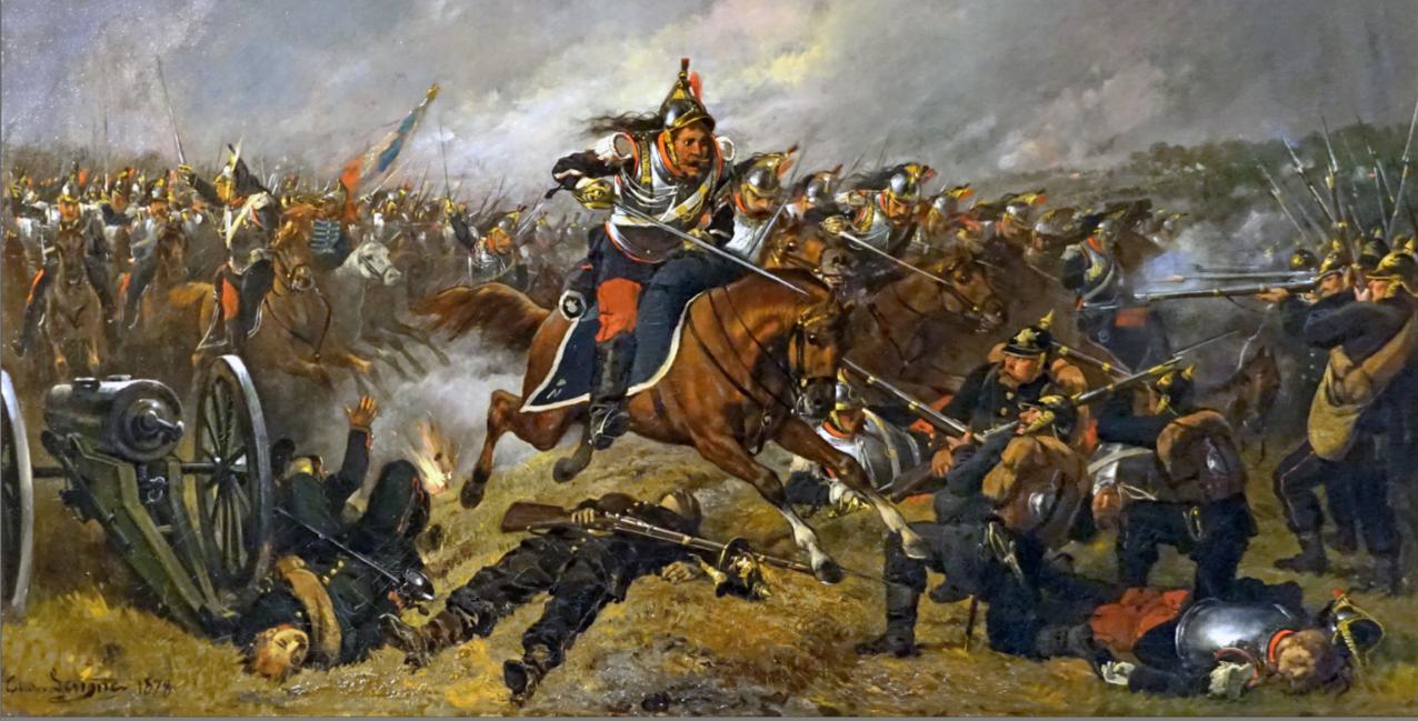 L'armée française est peu à peu repoussée par les troupes coalisées allemandes, aux alentours de Morsbronn-les-Bains . Pour éviter un encerclement, le général Michel lance ses cuirassiers à l'assaut contre les Prussiens, embusqués dans les maisons de Morsbronn. C'est une charge héroïque et suicidaire : les Allemands mitraillent les Français sans défense. Les cuirassiers s'engagent dans la grand'rue de Morsbronn où ils sont littéralement exterminés. Pour l'armée française, c'est la débandade. Le général Mac-Mahon décide alors de se replier. Pour couvrir le retrait des troupes, le général Bonnemain lance une seconde charge des cuirassiers, près de Woerth. Les cuirassiers chargent au milieu des champs de houblon, dans des conditions similaires à la charge de Morsbronn. Eux aussi sont décimés. Ces deux charges sont devenues un symbole d'héroïsme français, mais elles n'ont pas permis d'enrayer l'avancée allemande et ont causé de nombreuses victimes.