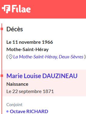 Louise DAUNIZEAU est née le 22/04/1871 à BRELOUX
