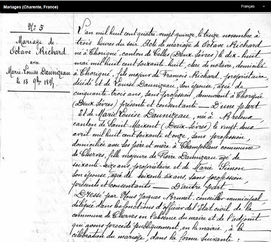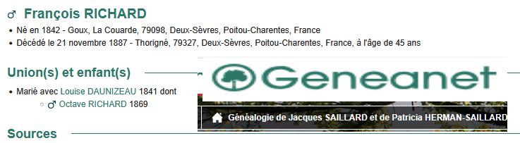 père RICHARD François est DCD à THORIGNE à